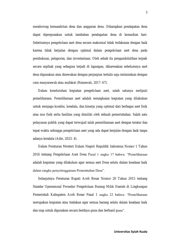 Baca Juga : PENERAPAN PERATURAN MENTERI DALAM NEGERI NOMOR 1 TAHUN 2016 TENTANG PENGELOLAAN ASET DESA PADA BEBERAPA GAMPONG DI KECAMATAN KRUENG BARONA JAYA KABUPATEN ACEH BESAR (Tengku Farhan Ristanury, 2023)