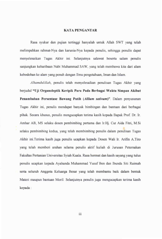 Jamaluddin, UJI ORGANOLEPTIK KERIPIK PARU PADA BERBAGAI WAKTU SIMPAN AKIBAT PENAMBAHAN PERSENTASE BAWANG PUTIH (ALLIUM SATIVUM). Banda Aceh Fakultas Pertanian,2009