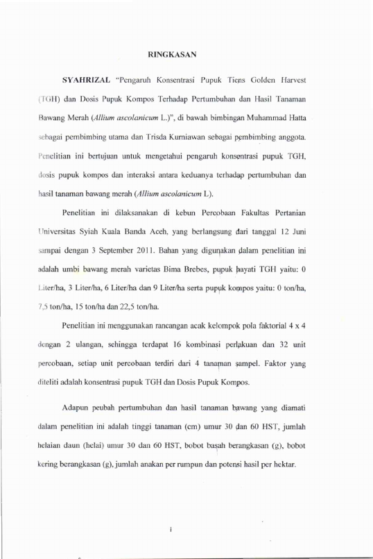 Syahrizal, PENGARUH KONSENTRASI PUPUK TIENS GOLDEN HARVEST (TGH) DAN DOSIS PUPUK KOMPOS TERHADAP PERTUMBUHAN DAN HASIL TANAMAN BAWANG MERAH (ALLIUM ASCALONICUM L.). Banda Aceh Fakultas Pertanian,2013