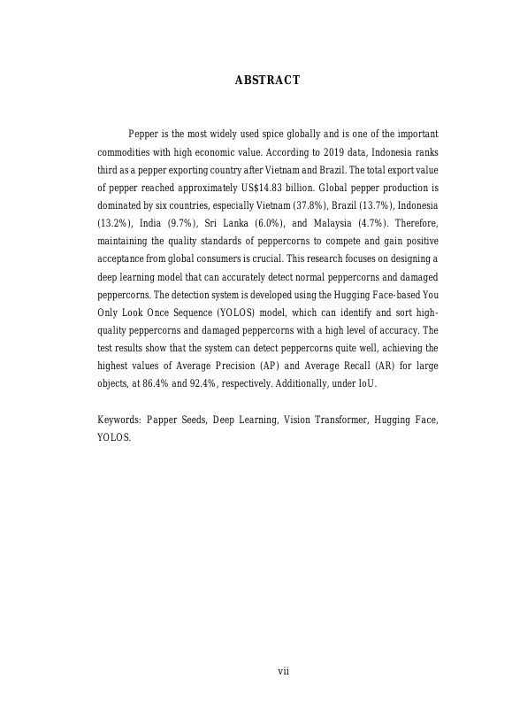 Qunun Qifa, PENDETEKSIAN KECACATAN BIJI LADA MENGGUNAKAN TEKNIK DEEP LEARNING BERBASIS YOLOS. Banda Aceh Fakultas Teknik Komputer,2024