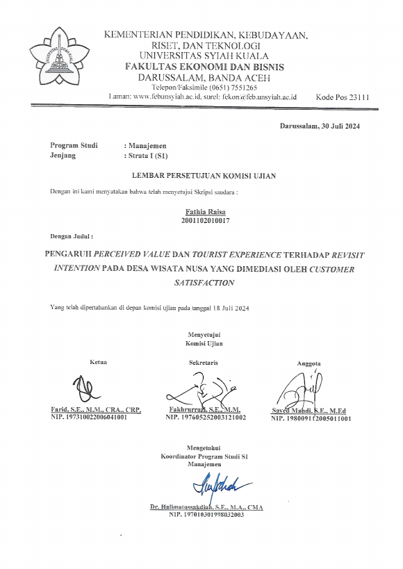 Baca Juga : PENGARUH DESTINATION IMAGE DAN TOURIST EXPERIENCE TERHADAP REVISIT INTENTION YANG DIMEDIASI OLEH PERCEIVED VALUE PADA DESTINASI WISATA HALAL DI KOTA BANDA ACEH (NELLY AGUSTIN FADIRYANA, 2018)