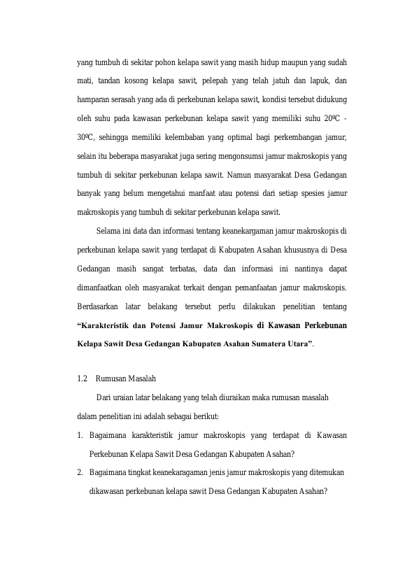 Dini Fitriani Nasution, KARAKTERISTIK DAN POTENSI JAMUR MAKROSKOPIS DI KAWASAN PERKEBUNAN ‎KELAPA SAWIT DESA GEDANGAN KABUPATEN ASAHAN SUMATERA UTARA‎. Banda Aceh Fakultas KIP Pendidikan Biologi,2024