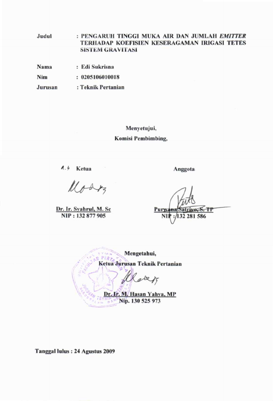 Baca Juga : KINERJA "EMITTER" TIPE SELANG KECIL DARI BAHAN LOKAL PADA SISTEM IRIGASI TETES (Edy Sayahputra, 2024)