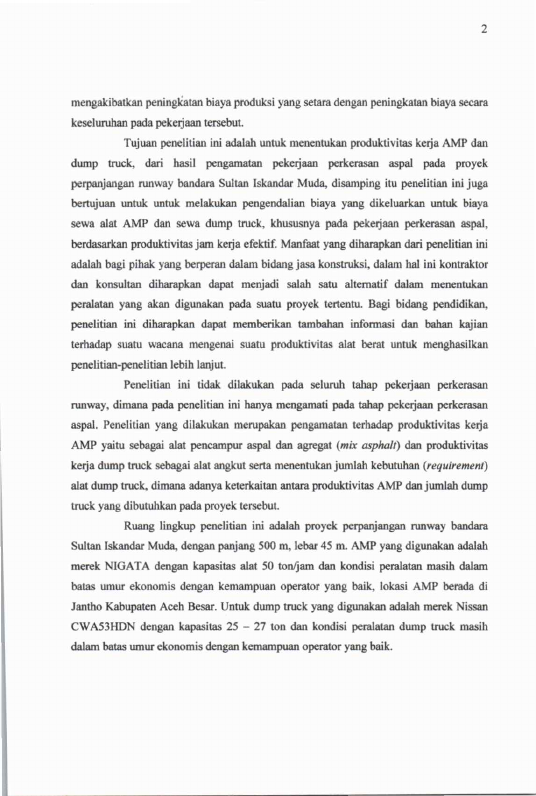 Ilham Irawadi, ANALISA PRODUKTIVITAS PERALATAN ASPHALT MIXING PLANT (AMP) DAN DUMP TRUCK PADA PROYEK PERPANJANGAN RUNWAY BANDARA SULTAN ISKANDAR MUDA. Banda Aceh Fakultas Teknik,2008