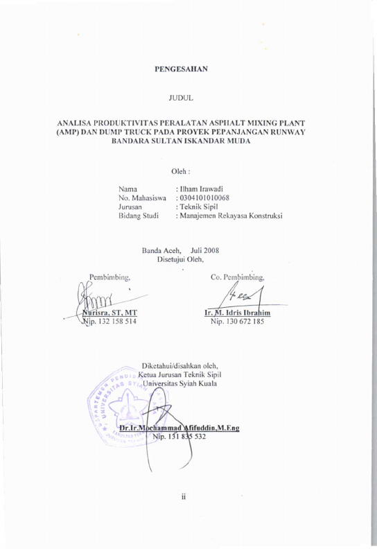 Baca Juga : ANALISA PRODUKTIVITAS PERALATAN ASPHALT MIXING PLANT (AMP) DAN DUMP TRUCK PADA PROYEK PERPANJANGAN RUNWAY BANDARA SULTAN ISKANDAR MUDA (Ilham Irawadi, 2024)