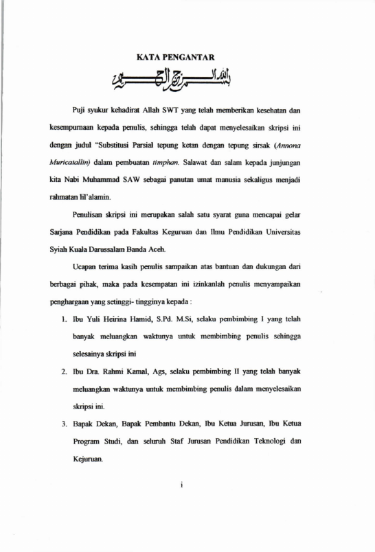 Yanti Zuraida, SUBSTITUSI PARSIAL TEPUNG KETAN DENGAN TEPUNG SIRSAK (ANNONA MURICATALLIN) DALAM PEMBUATAN TIMPHAN. Banda Aceh Fakultas Keguruan dan Ilmu Pendidikan,2006