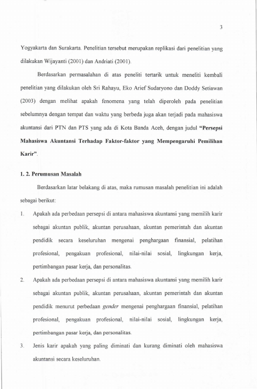 Ayi puspita handayani, PERSEPSI MAHASISWA AKUNTANSI TERHADAP FAKTOR-FAKTOR YANG MEMPENGARUHI PEMILIHAN KARIR SEBAGAI AKUNTAN. Banda Aceh Fakultas Ekonomi,2006