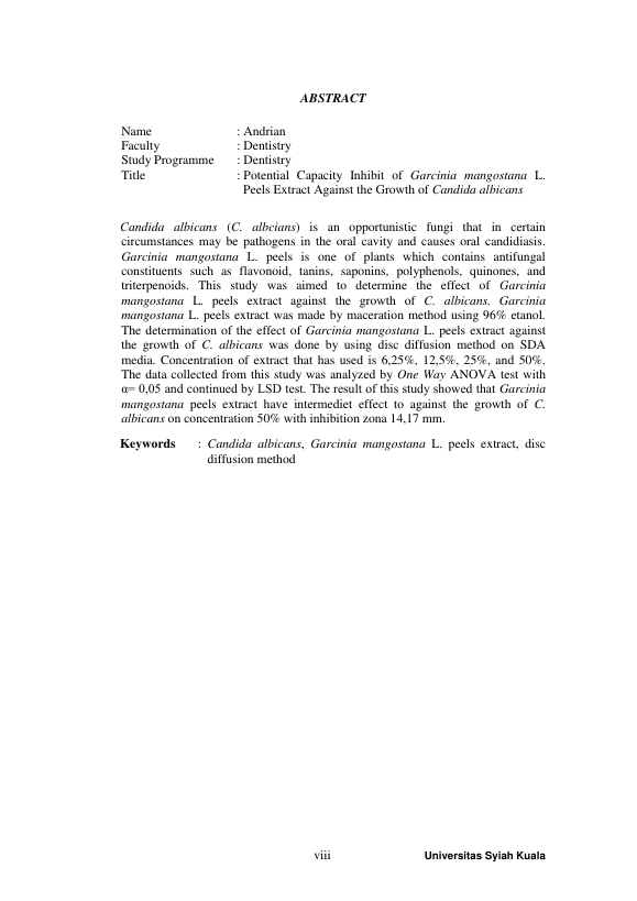 Baca Juga : PERBANDINGAN PENGARUH EKSTRAK KULIT MANGGIS (GARCINIA MANGOSTANA L.) OLAHAN LABORATORIUM FKIP KIMIA UNSYIAH DAN OLAHAN PABRIK TERHADAP PERTUMBUHAN BAKTERI ENTEROCOCCUS FAECALIS (FAIZA ATIKA, 2018)