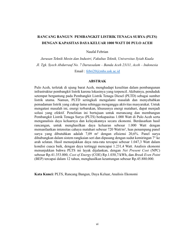 Baca Juga : RANCANG BANGUN PEMBANGKIT LISTRIK TENAGA SURYA (PLTS) DENGAN KAPASITAS DAYA KELUAR 1000 WATT DI PULO ACEH (Naufal Febrian, 2024)