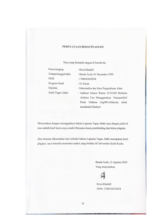 Baca Juga : APLIKASI SENSOR WARNA TCS3200 BERBASIS ARDUINO UNO DALAM ANALISIS KADAR MERKURI DI AIR MENGGUNAKAN NANOPARTIKEL PERAK TERMODIFIKASI SUKROSA DAN FRUKTOSA (Mici Devi Yanti, 2023)