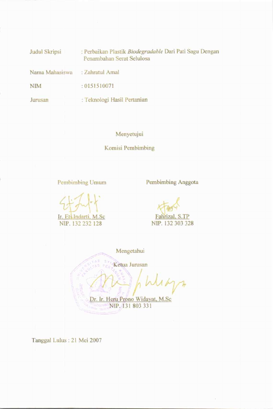 Baca Juga : PERBAIKAN KARAKTERISTIK PLASTIK BIODEGRADABLE PATI SAGU DENGAN PENAMAHAN BAHAN TAMBAHAN (MINYAK SAWIT DAN SERAT SELULOSA) (Ruhul Haya, 2025)