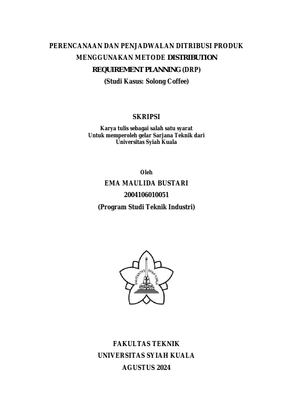 Baca Juga : PERENCANAAN DAN PENJADWALAN DISTRIBUSI YAKULT DENGAN MENGGUNAKAN METODE DISTRIBUTION REQUIREMENT PLANNING (DRP) PADA PT YAKULT INDONESIA PERSADA CABANG BANDA ACEH (Alaina Sahisti Handayani, 2017)