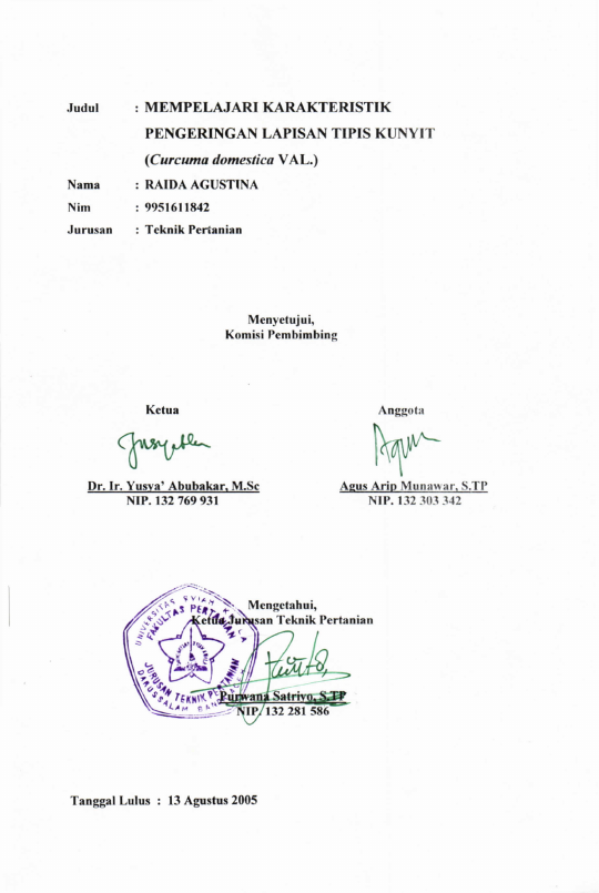 Baca Juga : MEMPELAJARI KARAKTERISTIK PENGERINGAN LAPISAN TIPIS KUNYIT (CURCUMA DOMESTICA VAL.). (Raida Agustina, 2024)
