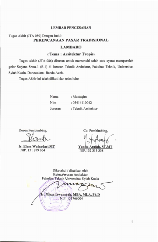 Mustaqim, PERENCANAAN PASAR TRADISIONAL LAMBARO TEMA : ARSITEKTUR TROPIS. Banda Aceh Fakultas Teknik,2007