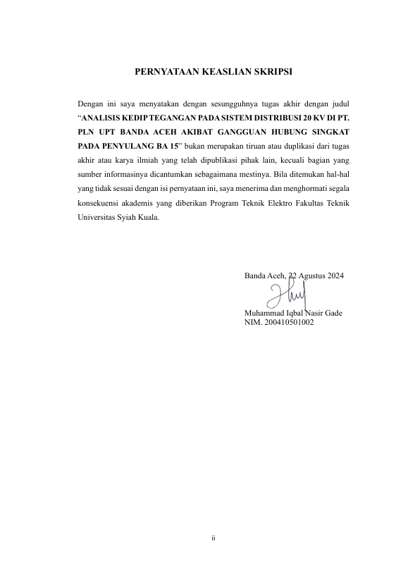 Muhammad Iqbal Nasir Gade, ANALISIS KEDIP TEGANGAN PADA SISTEM DISTRIBUSI 20 KV DI PT. PLN UPT BANDA ACEH AKIBAT GANGGUAN HUBUNG SINGKAT PADA PENYULANG BA15. Banda Aceh Fakultas Teknik Elektro,2024
