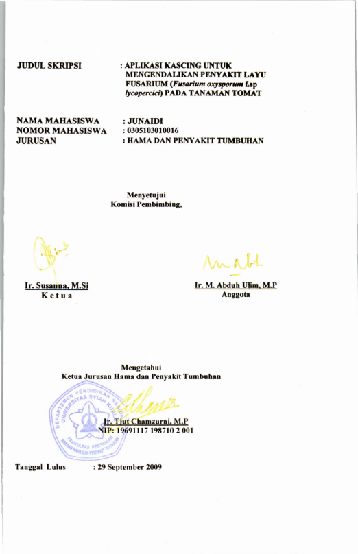 Baca Juga : PENGARUH DOSIS DAN FREKUENSI PEMBERIAN KASCING UNTUK PENGENDALIAN PENYAKIT LAYU FUSARIUM (FUSARIUM OXYSPORUM F.SP LYCOPERSICI) PADA TANAMAN TOMAT (LYCOPERSFICUM ESCULENTUMUM MILL) (Arisandi Pratama, 2024)