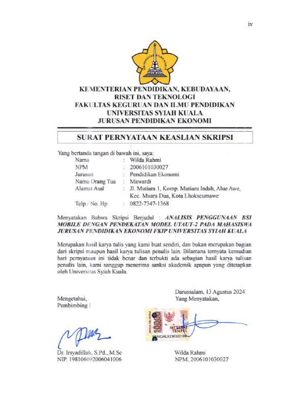 Baca Juga : ANALISIS PENGGUNAAN BSI MOBILE DENGAN PENDEKATAN MODEL UTAUT-2 PADA MAHASISWA JURUSAN PENDIDIKAN EKONOMI FKIP UNIVERSITAS SYIAH KUALA (WILDA RAHMI, 2024)