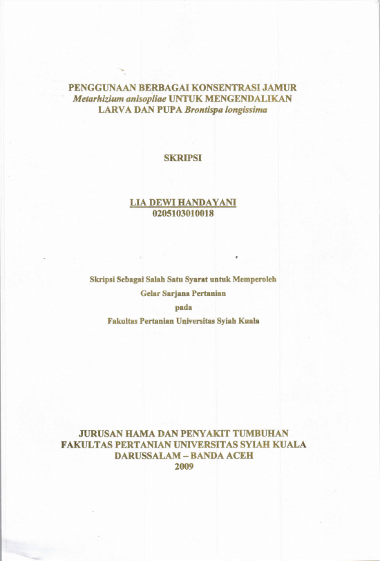 Baca Juga : PENGGUNAAN BERBAGAI KONSENTRASI CENDAWAN METARHIZIUM ANISOPLIAE UNTUK MENGENDALIKAN LARVA DAN PUPA BRONTISPA LONGISSIMA (Lia Dewi handayani, 2024)