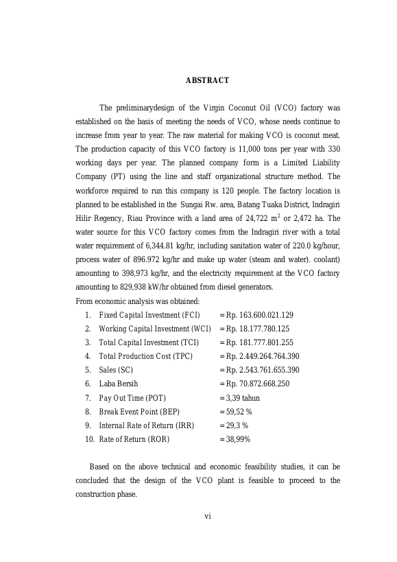Baca Juga : PRARANCANGAN PABRIK MINYAK KELAPA (VIRGIN COCONUT OIL) DENGAN KAPASITAS BAHAN BAKU 20.000 TON/TAHUN) (Lia Novarina, 2018)