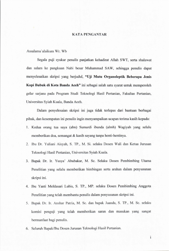 Agus Supriansyah, UJI MUTU ORGANOLEPTIK BEBERAPA JENIS KOPI BUBUK DI KOTA BANDA ACEH. Banda Aceh Fakultas Pertanian,2012