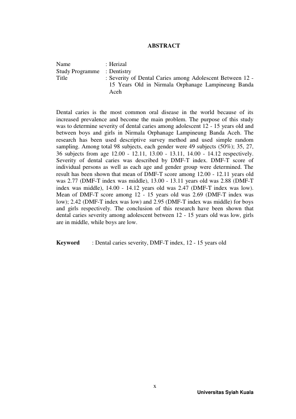 Baca Juga : KEPARAHAN KARIES GIGI PADA REMAJA USIA 12- 15 TAHUN DI PANTI ASUHAN NIRMALA LAMPINEUNG BANDA ACEH. (Herizal, 2023)