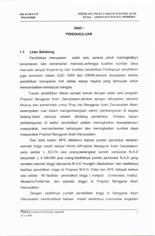 Sri Hartati, SEKOLAH TINGGI FARMASI DI BANDA ACEH. Banda Aceh Fakultas Teknik Univesitas Syiah Kuala,