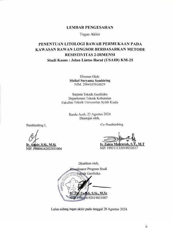 Baca Juga : IDENTIFIKASI STRUKTUR BAWAH PERMUKAAN KAWASAN TERDAMPAK LONGSOR MENGGUNAKAN METODE RESISTIVITAS DI DESA LAMKLENG, KUTA COT GLIE, ACEH BESAR (TEUKU MUHAMMAD FIRLI, 2022)