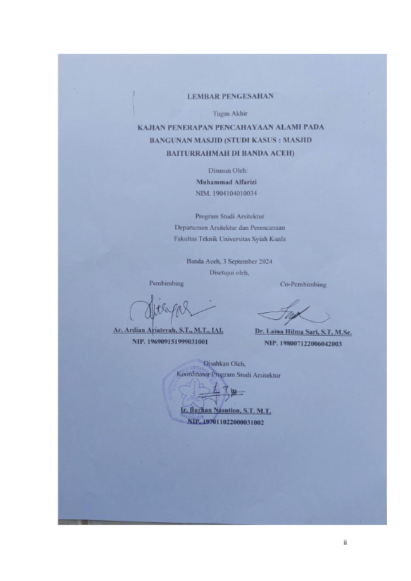 Baca Juga : KAJIAN PENERAPAN PENCAHAYAAN ALAMI PADA BANGUNAN MASJID (STUDI KASUS : MASJID BAITURRAHMAH DI BANDA ACEH) (Muhammad Alfarizi, 2024)