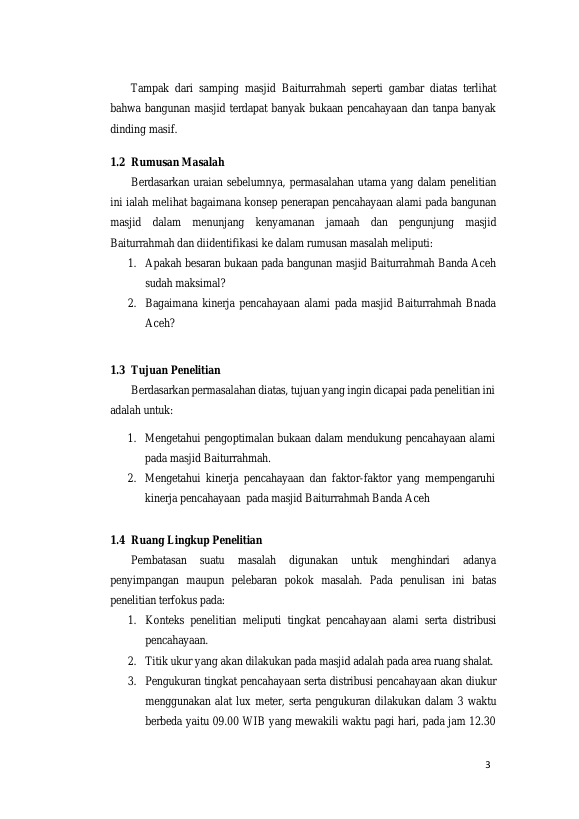 Baca Juga : KAJIAN PENERAPAN PENCAHAYAAN ALAMI PADA BANGUNAN MASJID (STUDI KASUS : MASJID BAITURRAHMAH DI BANDA ACEH) (Muhammad Alfarizi, 2024)