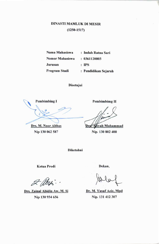 Indah Ratna Sari, DINASTI MAMLUK DI MESIR (1250-1517M). Banda Aceh Fakultas FKIP,