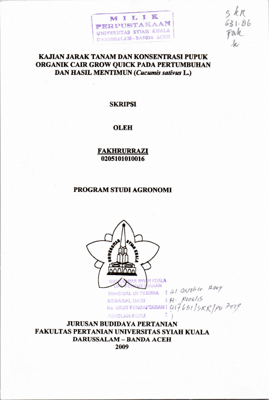 Baca Juga : PENGARUH JENIS PUPUK ORGANIK PADA BEBERAPA VARIETAS MENTIMUN ( CUCUMIS SATIVUS L.) TERHADAP PERTUMBUHAN DAN HASIL EFFECT OF ORGANIC FERTILIZER ON SOME VARIETY CUCUMBER (CUCUMIS SATIVUS L.) ON THE GROWTH AND YIELD (ikhrawan, 2015)