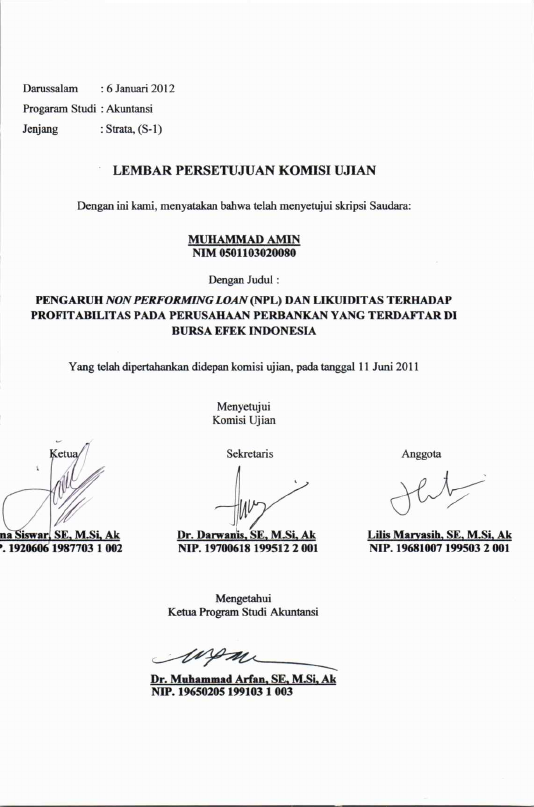 muhammad Amin, PENGARUH NON PERFORMING LOAN (NPL) DAN LIKUIDITAS TERHADAP PROFITABILITAS PERUSAHAAN PERBANKAN YANG TERDAFTAR DI BURSA EFEK INDONESIA. Banda Aceh Fakultas Ekonomi,
