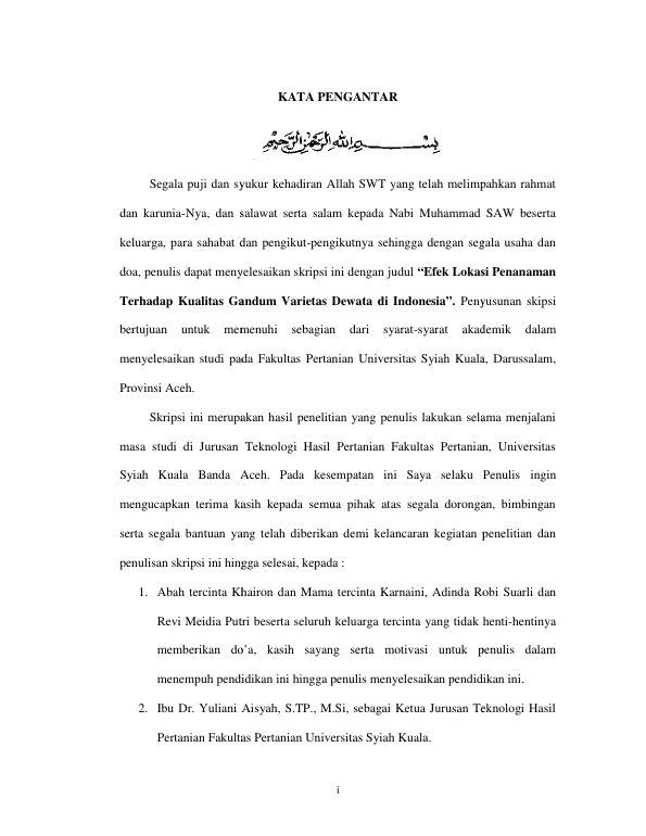 IRMAN SYAHRONI, EFEK LOKASI PENANAMAN TERHADAP KUALITAS GANDUM VARIETAS DEWATA DI INDONESIA. Banda Aceh Fakultas Pertanian,2015