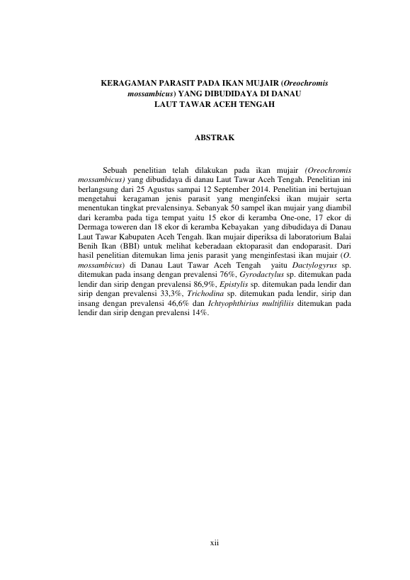 MORTALITAS IKAN MUJAIR (OREOCHROMIS MOSSAMBICUS) (liatul fatimah, 2013)