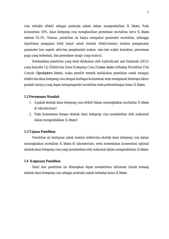Baca Juga : EFEKTIVITAS DAUN KETEPENG CINA (CASSIA ALATA L.) TERHADAP RNMORTALITAS DAN PERKEMBANGAN ULAT GRAYAK (SPODOPTERA LITURA F.) RNDI LABORATORIUM (SORAYA SYUKRIAH, 2024)