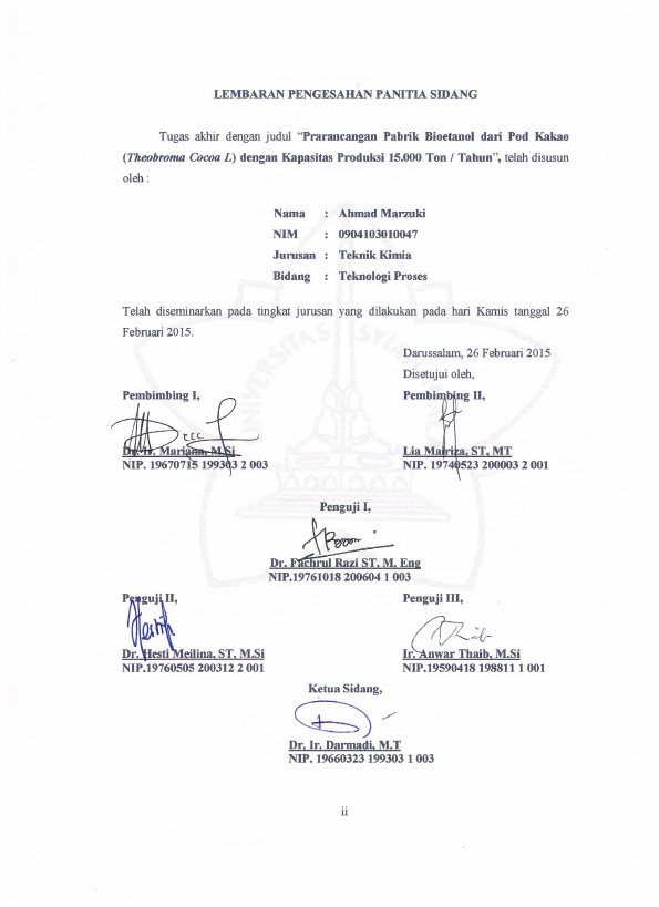 Richi Gunawan, PRARANCANGAN PABRIK BIOETANOL DARI POD KAKAO (THEOBROMA COCOA L) DENGAN KAPASITAS PRODUKSI 15.000/TAHUN. Banda Aceh teknik,2015