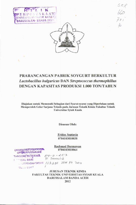 Baca Juga : PRARANCANGAN PABRIK SOYGURT BERKULTUR LACTOBACILLUS BULGARICUS DAN STREPTOCOCCUS THERMOPHILLUS DENGAN KAPASITAS PRODUKSI 1.000 TON/TAHUN (Rachmad Darmawan, 2024)