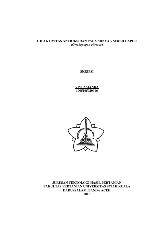 Baca Juga : UJI AKTIVITAS ANTIOKSIDAN EKSTRAK ETANOL BATANG SEREH DAPUR (CYMBOPOGON CITRATUS) SECARA IN VITRO (YOLANDA NACA INDRIA, 2024)