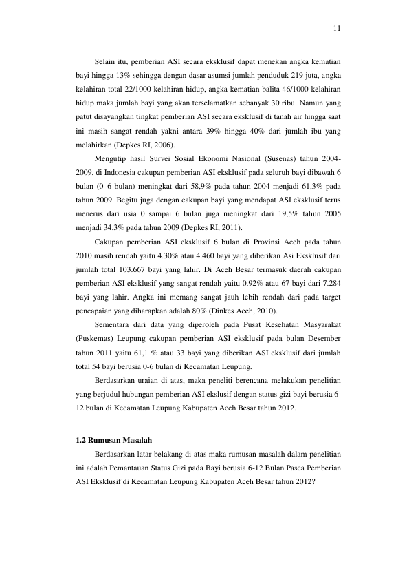 Aulya Ida Andriani, PEMANTAUAN STATUS GIZI PADA BAYI BERUSIA 6-12 BULAN PASCA PEMBERIAN ASI EKSKLUSIF DI KECAMATAN LEUPUNG KABUPATENRNACEH BESAR. Banda Aceh Fakultas Kedokteran,2012