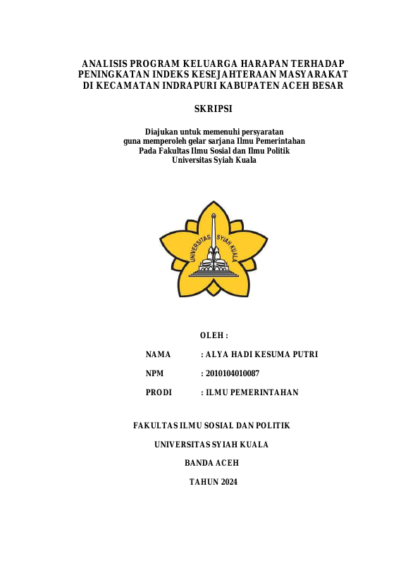 Baca Juga : ANALISIS PROGRAM KELUARGA HARAPAN TERHADAP PENINGKATAN INDEKS KESEJAHTERAAN MASYARAKAT DI KECAMATAN INDRAPURI KABUPATEN ACEH BESAR (ALYA HADI KESUMA PUTRI, 2024)