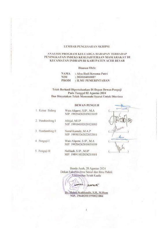 Baca Juga : ANALISIS PROGRAM KELUARGA HARAPAN TERHADAP PENINGKATAN INDEKS KESEJAHTERAAN MASYARAKAT DI KECAMATAN INDRAPURI KABUPATEN ACEH BESAR (ALYA HADI KESUMA PUTRI, 2024)
