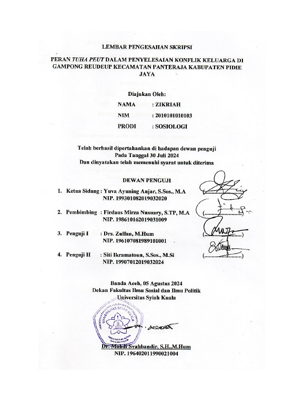 Baca Juga : PERAN TUHA PEUT DALAM MENYELESAIKAN KONFLIK DI KALANGAN MASYARAKAT (STUDI KASUS: DI KECAMATAN MEUREUDU KABUPATEN PIDIE JAYA) (MUTTAQIN, 2016)