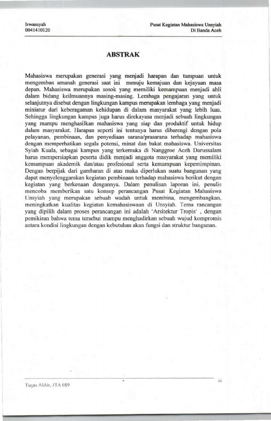 Baca Juga : PERANCANGAN PUSAT KEGIATAN MAHASISWA UIN AR-RANIRY BANDA ACEH (Ayuni, 2016)