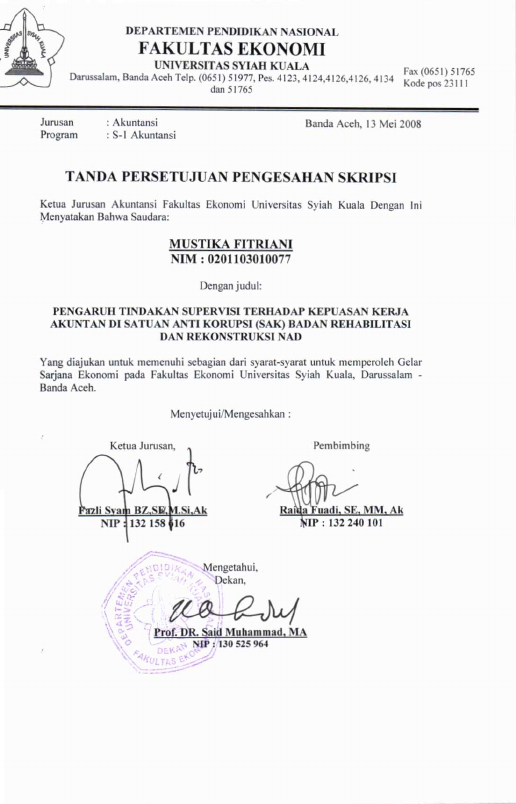 Mustika Fitriani, PENGARUH TINDAKAN SUPERVISI TERHADAP KEPUASAN KERJA PADA SATUAN ANTI KORUPSI (SAK) BADAN REHABILITASI DAN REKONSTRUKSI (BRR) NAD. Banda Aceh Fakultas Ekonomi,2008