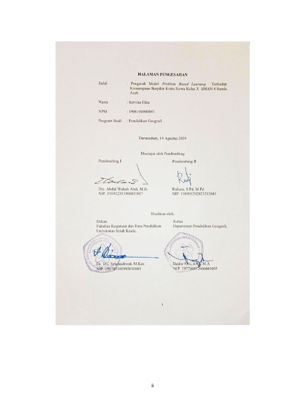 Baca Juga : PERBANDINGAN HASIL BELAJAR PESERTA DIDIK MENGGUNAKAN MODEL PROBLEM BASED LEARNING DENGAN MODEL CONTEXTUAL TEACHING AND LEARNING DALAM PELAJARAN GEOGRAFI KELAS X DI SMAN 5 BANDA ACEH (NOVRA RIZKIA, 2020)