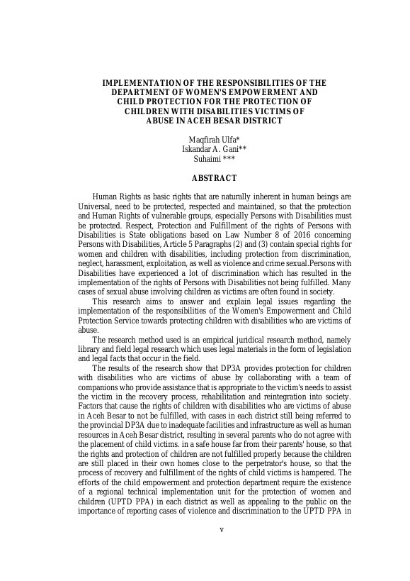 Baca Juga : PERLINDUNGAN HUKUM TERHADAP ANAK KORBAN TINDAK PIDANA PENCABULAN (SUATU PENELITIAN DI WILAYAH HUKUM POLISI RESORT SABANG) (ALMA ARDILA, 2021)