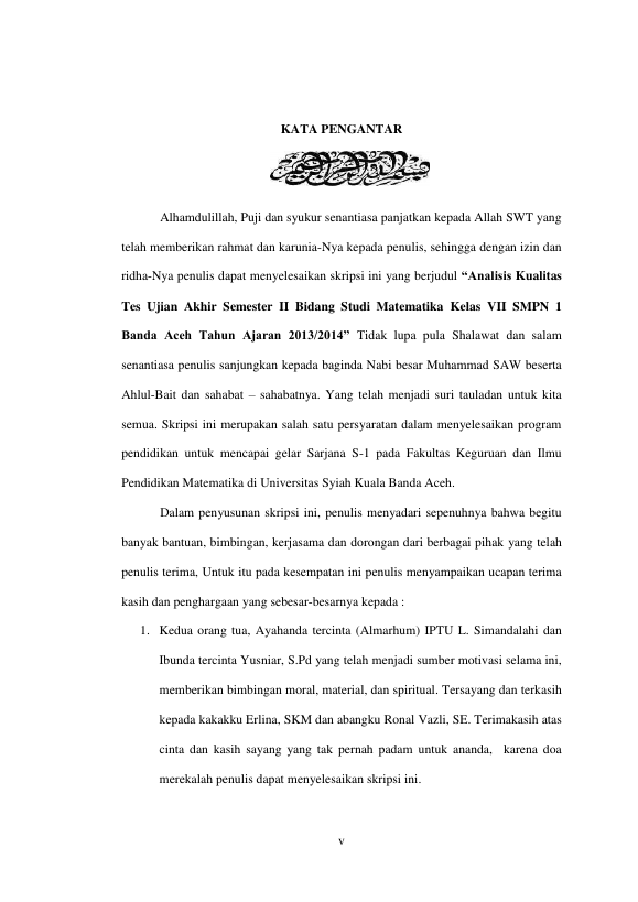 Baca Juga : KUALITAS TES MATEMATIKA PADA UJIAN SEMESTER GANJIL SISWA KELAS VII SMP NEGERI 10 BANDA ACEH TAHUN PELAJARAN 2013/2014 (Nadhiah Hanum, 2014)