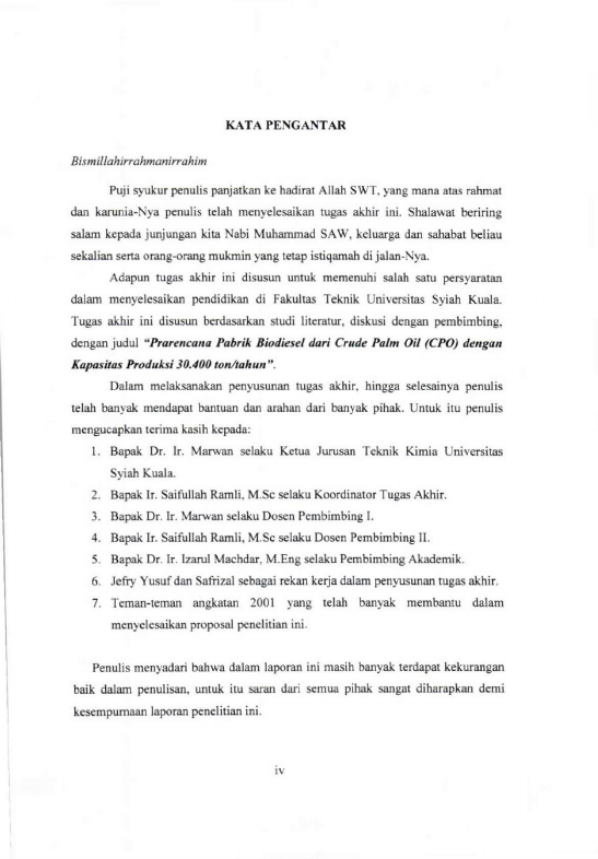 Baca Juga : PRARANCANGAN PABRIK BIODIESEL DARI CRUDE PALM OIL (CPO) DENGAN KAPASITAS PRODUKSI 30.400 TON/TAHUN (Syafrizal, 2024)
