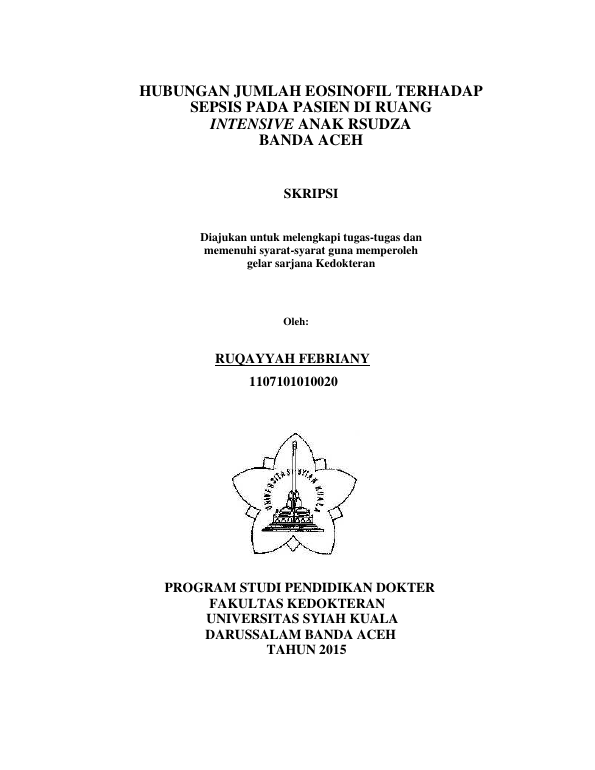 Baca Juga : HUBUNGAN EOSINOPENIA SEBAGAI PREDIKTOR MORTALITAS PASIEN SEPSIS DI RUMAH SAKIT UMUM DR ZAINOEL ABIDIN (Dhanang Ali Yafi, 2016)