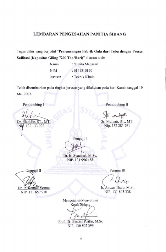 Baca Juga : PRARANCANGAN PABRIK GULA DARI TEBU DENGAN PROSES SULFITASI (KAPASITAS GILING 7200 TON/HARI) (Agus Rahmat Jamal, 2024)